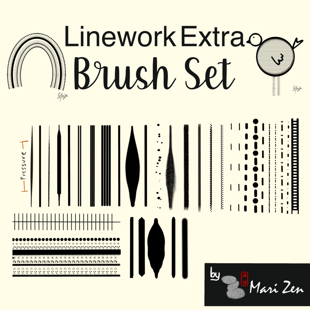 Linework Brush Set for Procreate - Part 2 Ink, dashes, crayon, liner, shapes, rainbows, stippling and more